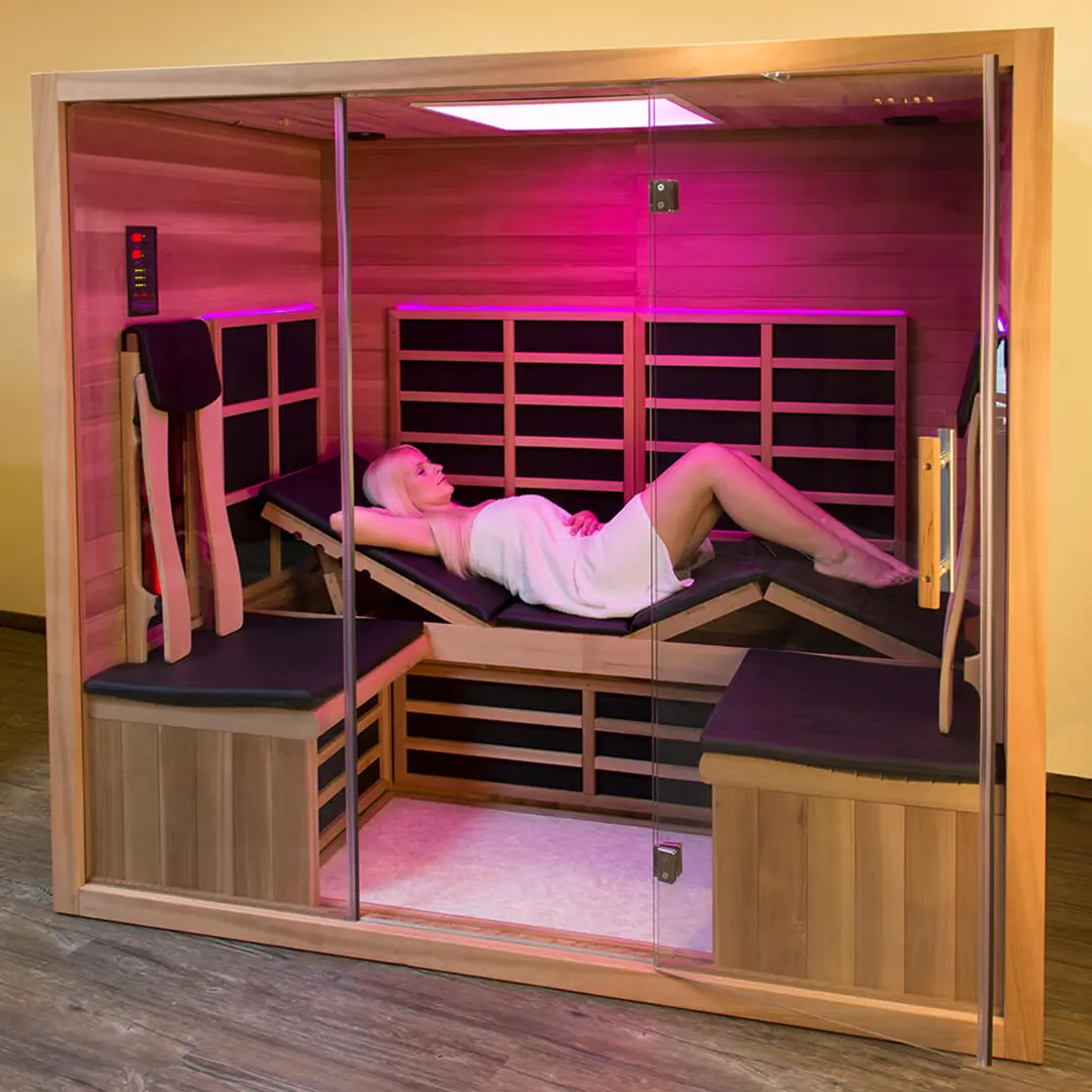 Wohltuende Infrarotwärme jetzt auch im liegen genießen. Das wird jetzt möglich durch unser neues Modell IWK 206 mit verstellbarer Liege, Diese passt sich perfekt ihrer Körperform an. Die beiden vorderen Sitzplätze ergänzen die Anwendung und sorgen für eine unterprechungsfrei Tiefenwärmeanwendung auf höchstem Niveau.